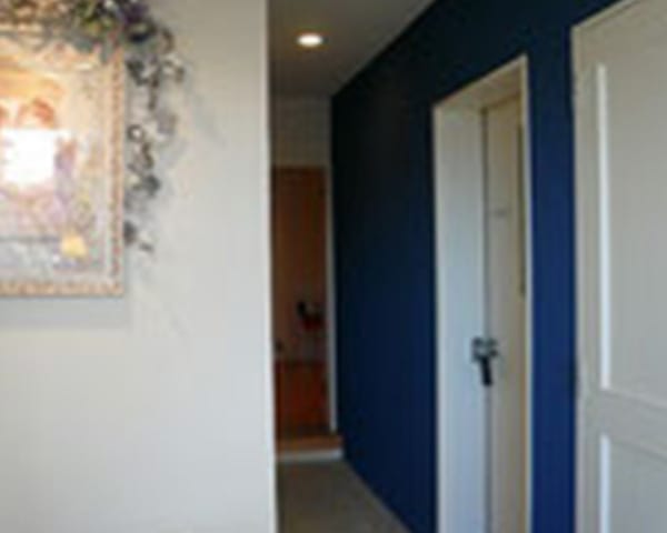 ロイヤルブルー基調の玄関を入るとフロントになりますが、